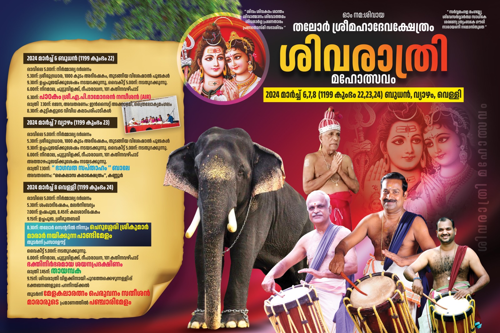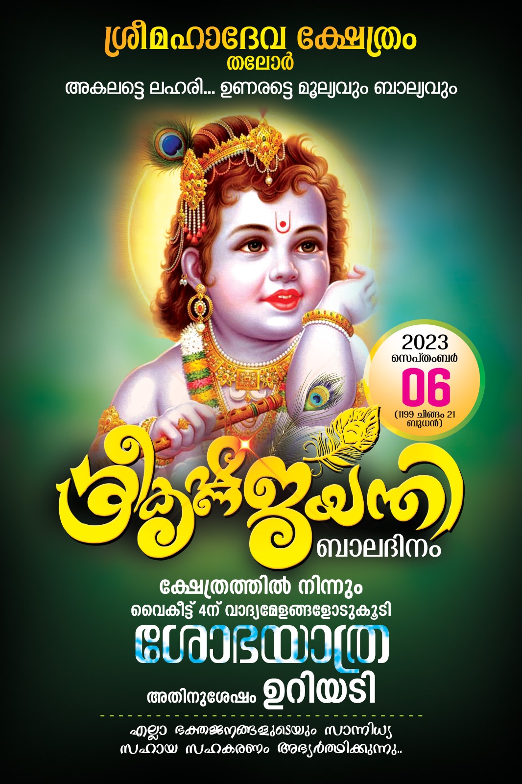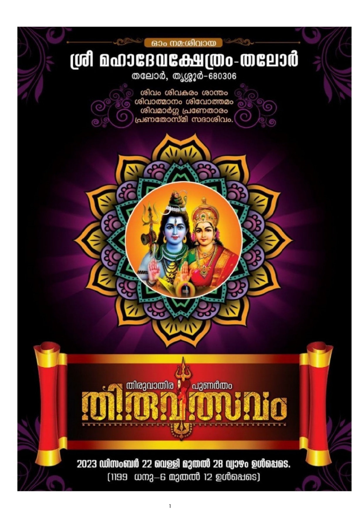 തലോരിന്റെ ഹൃദയഭാഗത്ത് സ്ഥിതി ചെയ്യുന്ന തലോർ ശ്രീമഹാദേവ ക്ഷേത്രത്തിലെ വർഷങ്ങളായി നടന്നുവരുന്ന തിരുവാതിര - പുണർതം തിരുവുത്സവം 1198 ധനു 17 മുതൽ 23 (2023 ജനുവരി 1 -ാം തിയ്യതി ഞായറാഴ്ച മുതൽ 07-ാം തിയ്യതി ശനിയാഴ്ച) ഉൾപ്പടെ 7 ദിവസങ്ങളിലായി ചിട്ടയോടും ഭക്തിനിർഭരമായ ചടങ്ങുകളോടും, കലാസാംസ്കാരിക പരിപാടികളോടും കൂടി ആഘോഷിക്കുവാൻ തീരുമാനിച്ച വിവരം ഏവരേയും സന്തോഷത്തോടുകൂടി അറിയിച്ചുകൊള്ളുന്നു.