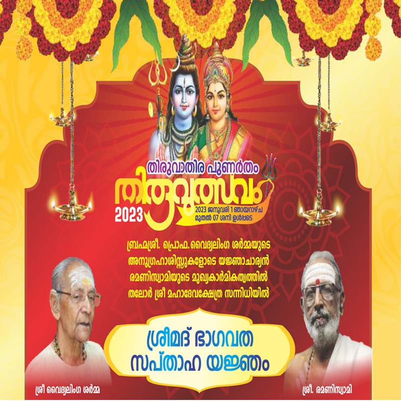 ഭക്തജനങ്ങൾക്ക് എന്നും അനുഗ്രഹം ചൊരിയുന്ന തലോർ ശ്രീ മഹാദേവ ക്ഷേത്ര സന്നിധിയിൽ തിരുവാതിര - പുണർതം തിരുവുത്സവത്തോടനുബന്ധിച്ച് 2022 ഡിസംബർ 24 മുതൽ 31 വരെ ശ്രീമദ് ഭാഗവത സപ്താഹയജ്ഞം നടക്കുന്നു. പ്രഗത്ഭനും പ്രതിഭാശാലിയും ഏറെ പ്രശസ്തനുമായ ശ്രീ. രമണിസ്വാമിയാണ് മുഖ്യയജ്ഞാചാര്യൻ.